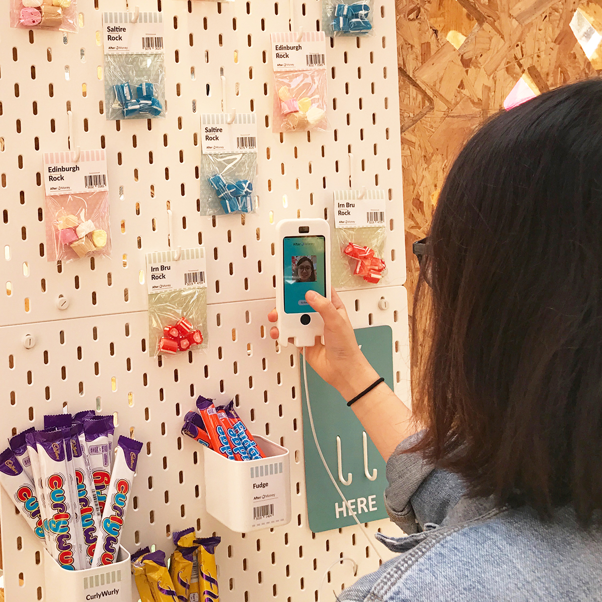 We installed this app in the Design Informatics Pavilion which exhibits a mixture of design and technology exploring themes aimed at provoking discussions on what it means to “design with data”. The exhibition is free and open to all, so join us and try our interactive installation. Our AfterMoney app may ask you to exchange a selfie for a flake or to sweep for your sweets. Come down to the Design Informatics Pavilion to explore how you could pay for candy with different forms of currency beyond just money.